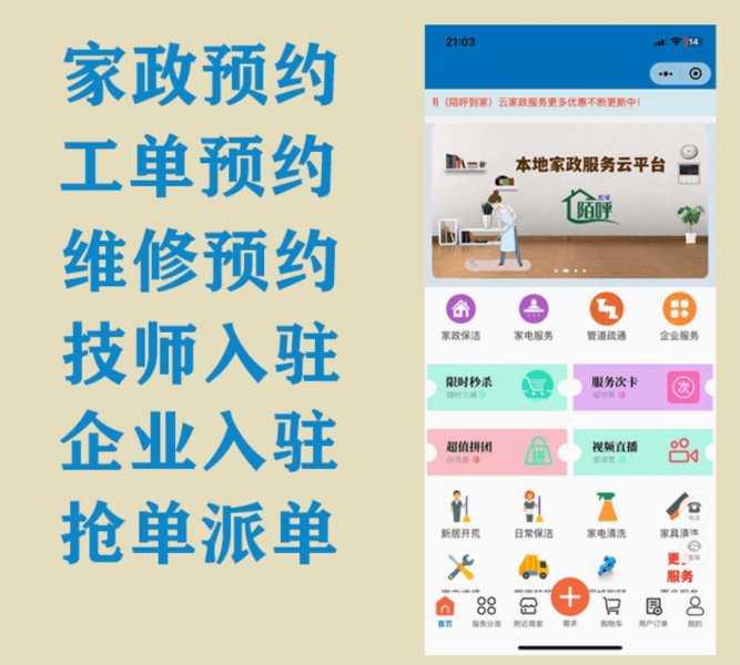 上门家政维修服务小程序抢单派单预约网站建设